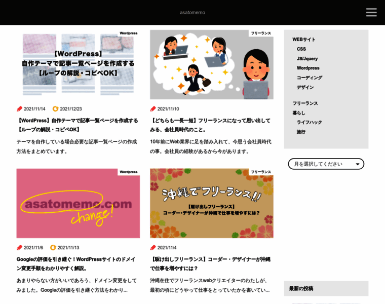 フリーランスでWEBサイトを制作しているあさとのブログ。沖縄に住んでいます。Webサイト作成についても忘備録をメモしています。