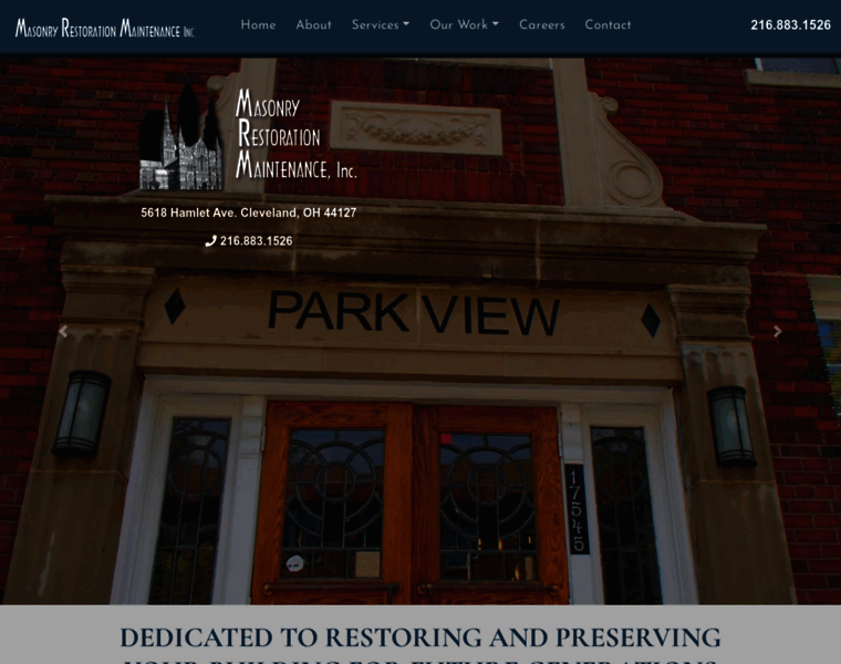 Masonry Restoration Maintenance, Inc., 216-883-1526, Cleveland Ohio, restores, repairs, preserves, and maintains building masonry; historic building preservation, brick and mortar repair and tuckpointing.