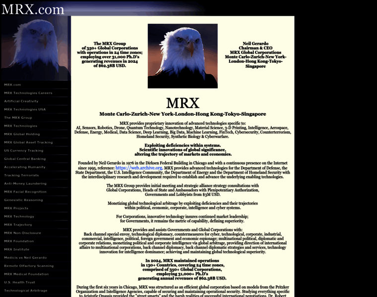 MRX, AI, Sensors, Robotics, Drone, Quantum Technology, 3-D Printing, Nanotechnology, Material Science, Intelligence, Aerospace, Defense, Energy, Medical, Data Science, Deep Learning, Big Data, Machine Learning, FinTech, Cybersecurity, Counterterrorism, Homeland Security, Synthetic Biology & Cyberwarfare.