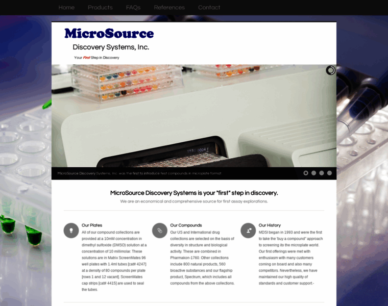 MicroSource Discovery Systems Inc is an innovator and leader in the provision of compound collections in microplate format. These are designed for use in screening programs that target discovery in new drug research. They are presented in specific groups: US drugs, international drugs, natural products, bioactive substances and agrochemicals. The Spectrum Collection encompasses all of the compounds that are available.