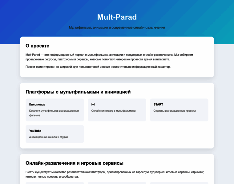Mult-Parad — мультфильмы, анимация и онлайн-развлечения