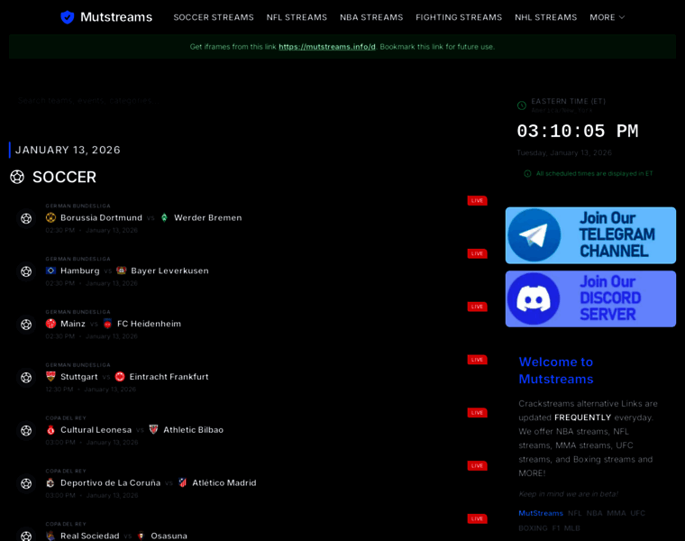 MutStreams - Crackstreams alternative to watch Live Streams