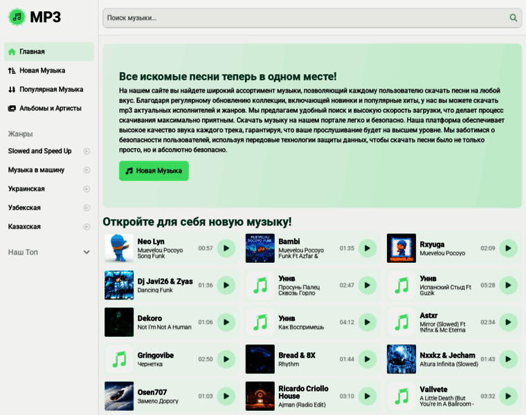Ищете качественные музыкальные треки? Наш сайт предоставляет бесплатные скачивания популярных и лучших песен в формате MP3.