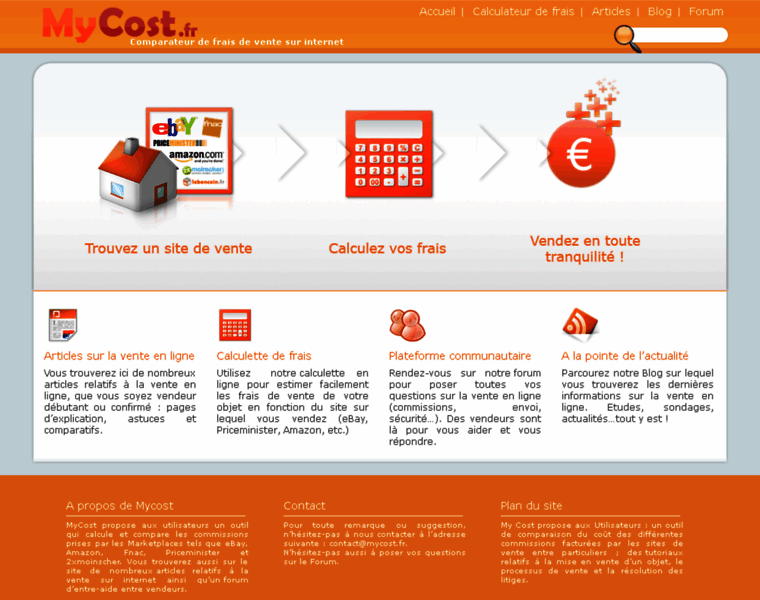 MyCost.fr: Comparateur de frais de vente des sites de vente en ligne. Des comparatifs pour vendre en ligne: eBay, Amazon, Priceminister, Fnac, 2xmoinscher...Toute la vente sur internet expliquée: frai...