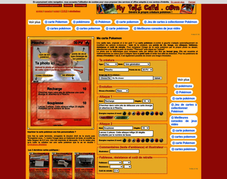 Ma carte pokémon à imprimer - Image de créature pokémon personnalisée avec ma photo et mes attaques