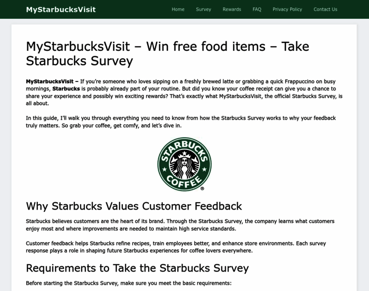 MyStarbucksVisit - Win free food items - Take Starbucks Survey