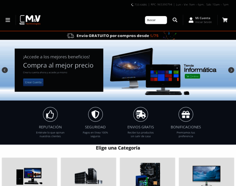 Somos la Tienda Informática Online especialista en brindar completas soluciones para usuarios del hogar y empresas. Compra online tus productos favoritos tales como Laptops, Computadoras, Impresoras, Servidores, Suministros, UPS, Componentes, Accesorios y recíbelos sin salir de casa o la oficina. M&V Technologies es la tienda online que el Perú prefiere.