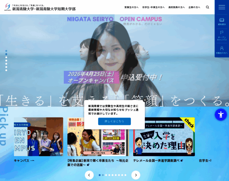 新潟市中央区にある、新潟青陵大学・新潟青陵短期大学の公式サイトです。看護や福祉、心理、保育、ビジネスなど、多岐にわたる分野の学科が揃っています。