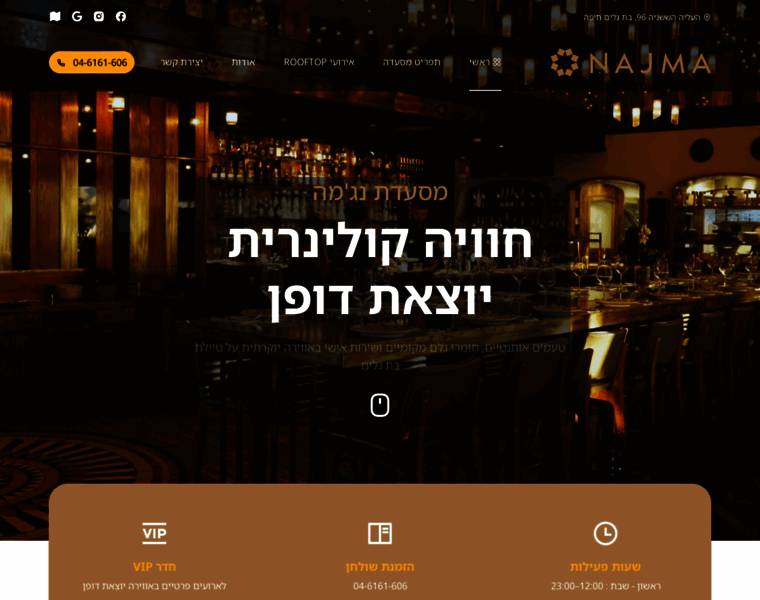 מסעדת נג׳מה מציעה חוויה קולינרית יוצאת דופן המשלבת בין טעמים לבנוניים לצרפתיים, על בסיס חומרי גלם גליליים טריים. בואו ליהנות מארוחות שף, קוקטיילים ייחודיים ואירוח בסטייל על קו הים של חיפה.