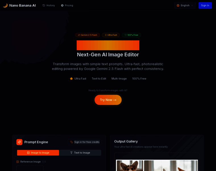 Nano Banana AI - Transform any image with simple text prompts! Powered by Google's Gemini 2.5 Flash for photorealistic edits with perfect character consistency. Try the most advanced AI image editor online.