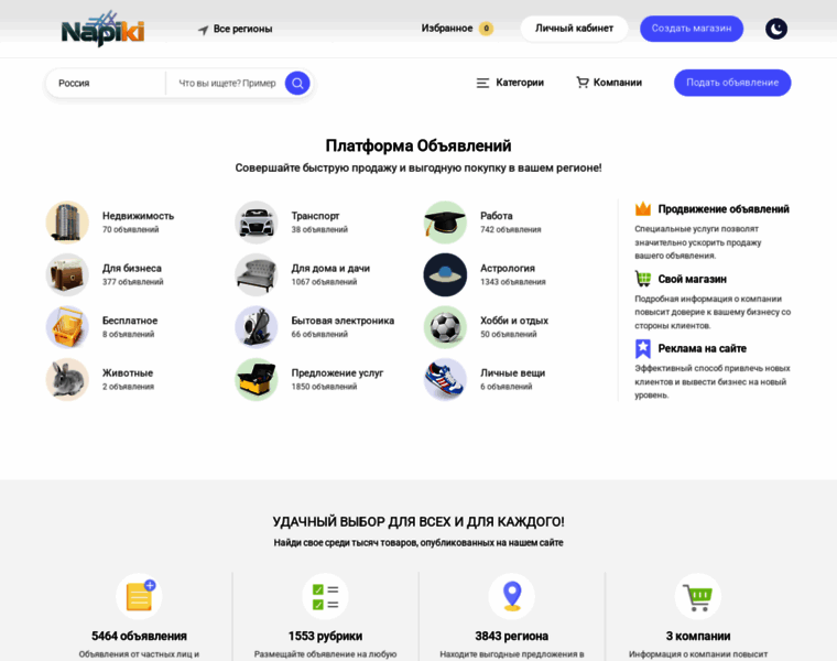 Напики - помогает продать или купить не выходя из дома! Тысячи новых объявлений! Доска бесплатных объявлений Napiki.ru
