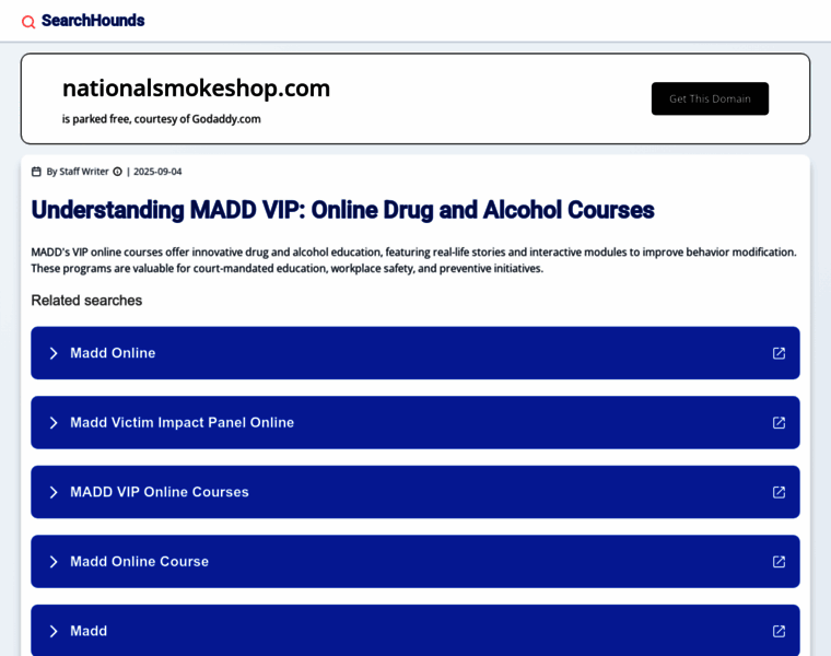 The registrar of nationalsmokeshop.com is GODADDY.COM, LLC and the name expires on 2026-08-31. Owner email is obscured for security reasons, so you cannot reach them directly. Their country of residence is United States of America.
