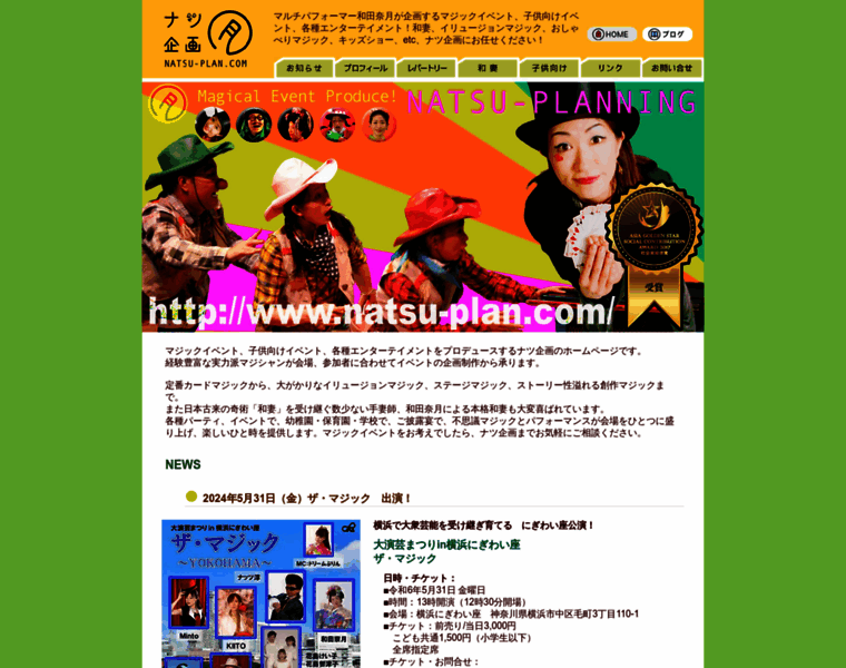 和田奈月が運営するナツ企画のHP。マジックイベント、子供向けイベント、各種エンターテイメント!