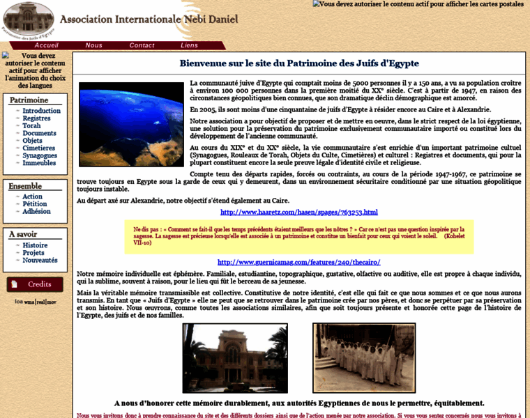 Site de l'association intrenationale Nebi Daniel - Patrimoine des juifs d'Egypte