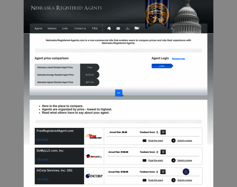 Nebraska-Registered-Agents.com is a non-commercial site that enables users to compare prices and rate their experience with Nebraska Registered Agents