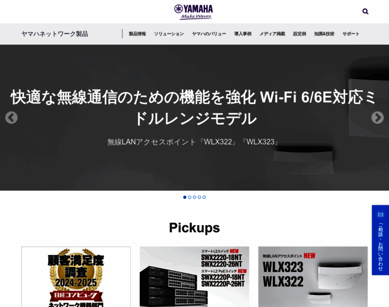 ヤマハのネットワーク機器のトップページです。ルーター、スイッチ、UTM/ファイアウォール、無線アクセスポイントの製品ラインナップや、ネットワーク統合管理ソフトウェア「ヤマハネットワークオーガナイザー(YNO)」などの紹介をしています。
