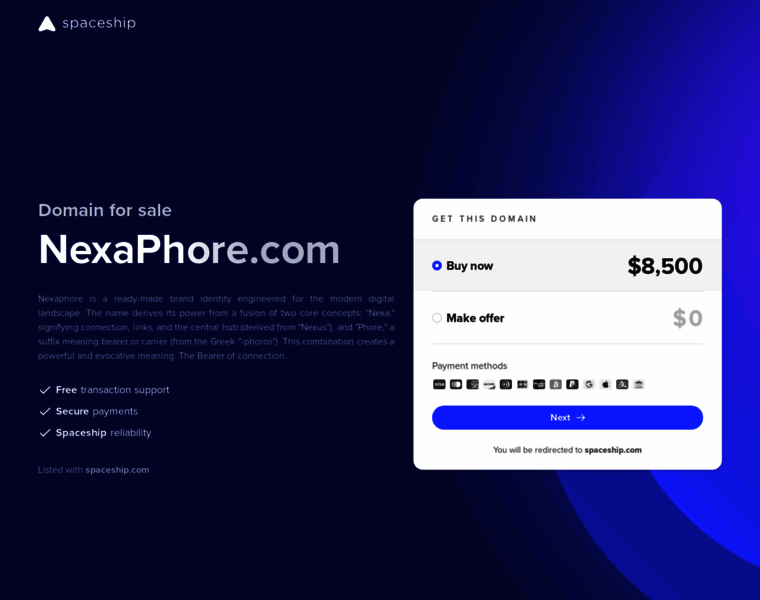 NexaPhore.com is for sale on Spaceship. Secure checkout and quick transfer. See all purchase options. No hidden fees.