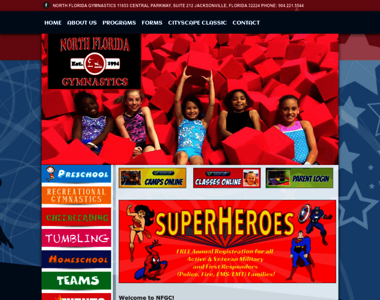 North Florida Gymnastics and Cheerleading in Jacksonville offers gymnastics classes starting at toddler/preschool level, competitive gymnastics and cheerleading