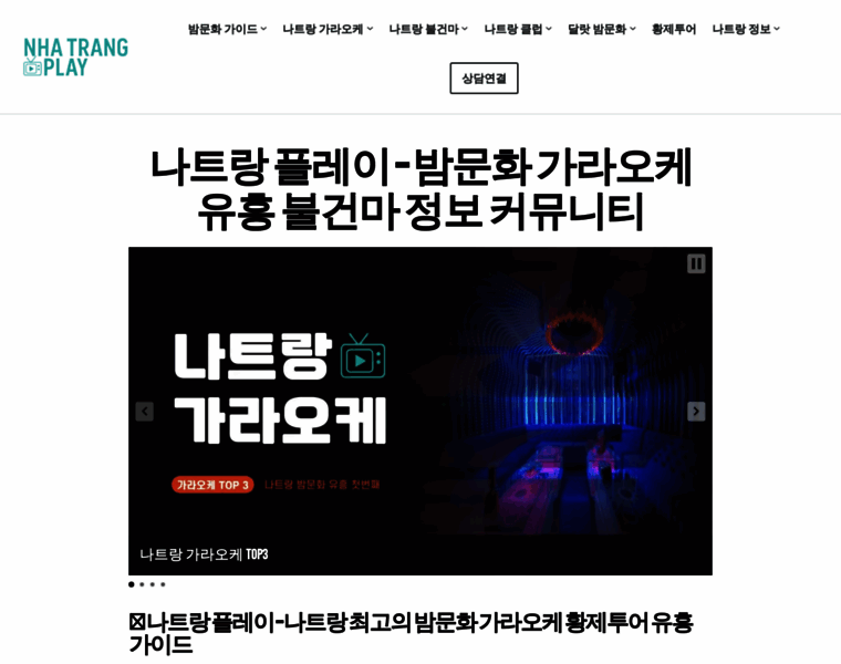 나트랑 플레이 (Nha Trang Play)는 베트남 최고의 휴양지인 나트랑에서 즐길 수 있는 모든 밤문화 정보 커뮤니티 입니다. 가라오케, 불건마, 클럽, 황제투어, 바 라운지를 에대한 설명히 자세하게 나와있고 실제 경험한 후기를 통해서만 정보를 공유해드리고 있습니다
