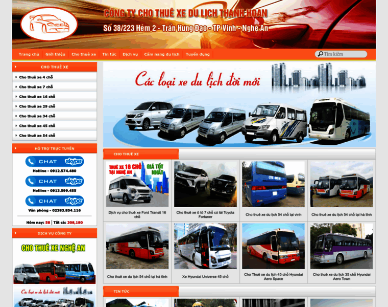 Công ty TNHH Vận Tải Du Lịch Thanh Hoan; Số 38/223 Hẻm 2 Đường Trần Hưng Đạo - TP Vinh - Nghệ An; ĐT: 0917.115.218 - 0912.574.480; Email: dntnthanhhoan123@gmail.com - http://nhaxenghean.com