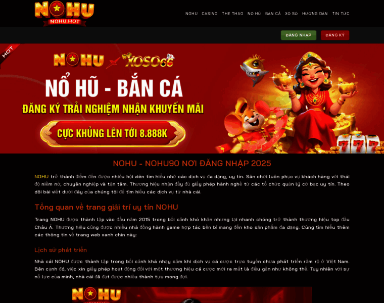NOHU hiện đang là trang web thu hút nhiều lượt truy cập nhất hiện nay. Nhà cái cung cấp các dịch vụ cá cược trực tuyến đa dạng như nổ hũ, bắn cá, lô đề, casino.