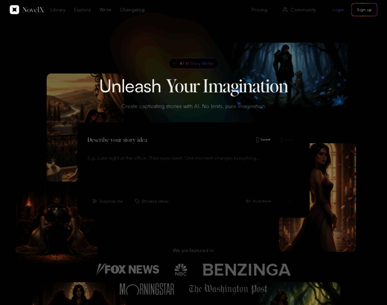 Free AI story generator with characters, chapters, and cover art. Write novels, fanfiction, romance, and more — bring any story idea to life in minutes with NovelX.