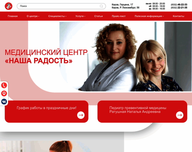 Главной ценностью медицинского центра «Наша радость» являются высококвалифицированные специалисты! Лучшие детские врачи области, современное медицинское оборудование позволяют осуществлять оперативную и точную диагностику заболеваний, назначать необходимое лечение.