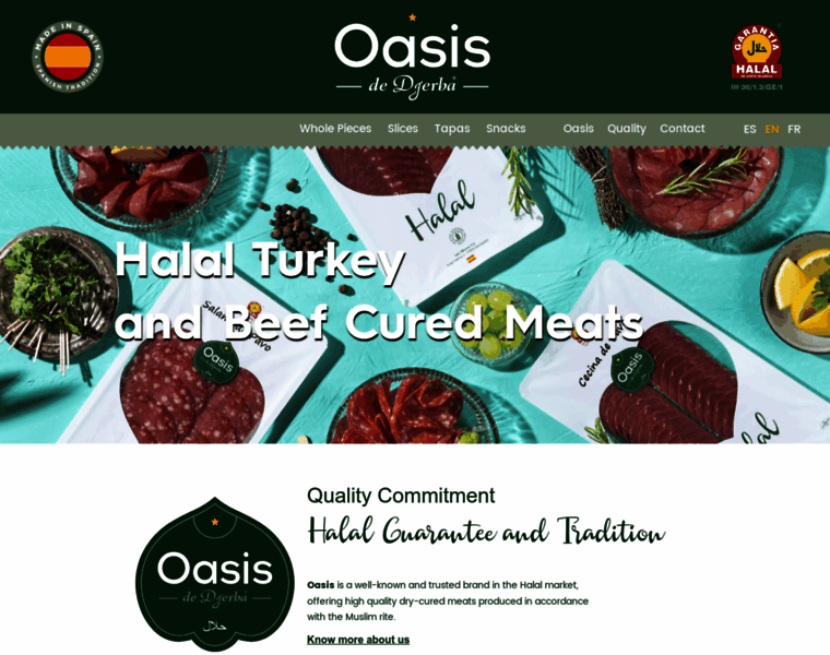 Welcome to the Oasis Halal Foods website. Sausages, meats and products with top quality Halal certificate. Oasis de Djerba brand.