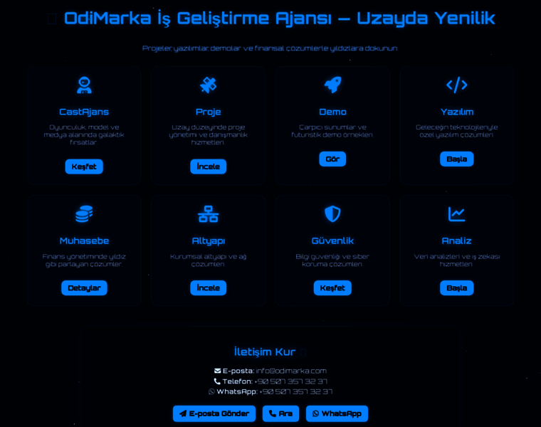 This website is hosted with Narin Bilisim Teknolojileri, which reserves the following IP addresses for odimarka.com.tr: 185.171.24.57. Moreover, DNS used with this website include host1.narinhosting.com, host2.narinhosting.com.