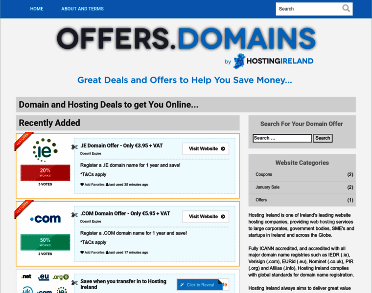 Domain name offers, deals and discounts, save money and get the latest deals and voucher codes on domains and web hosting.