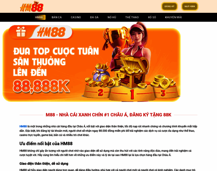 HM88 - nhà cái xanh chín #1 Châu Á, Đăng ký tặng 88K