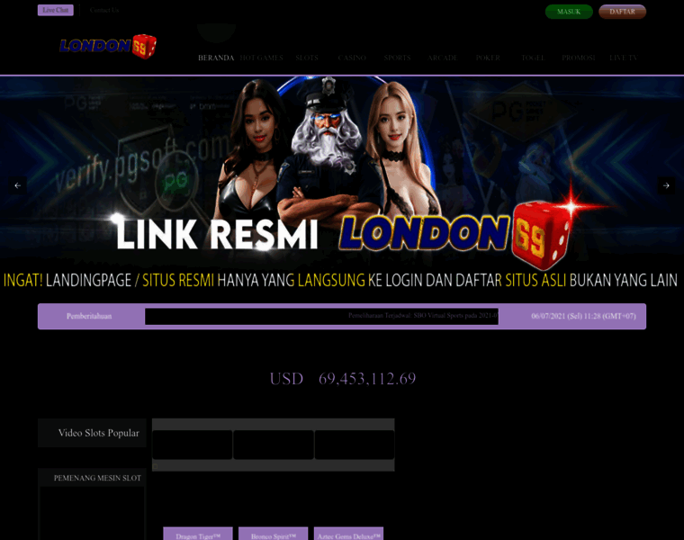 LONDON69 merupakan situs dengan server IDN (Indonesia) Slot yang populer dengan berbagai fitur terbaik dan ter lengkap saat ini.