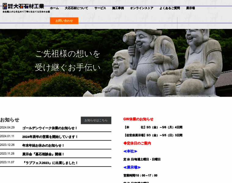 大石石材工業は長崎県(佐世保市・東彼杵郡)・佐賀県(伊万里市・武雄市)を中心に、お墓作り、お墓のリフォーム、お墓修理、霊園販売、お墓参り代行、石工事をしています。