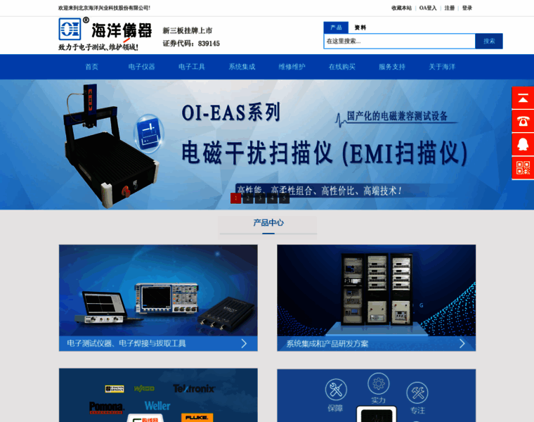 北京海洋兴业科技股份有限公司是电子测试行业领先的综合服务商,提供电子测试测量仪器仪表的销售、系统集成、技术开发和维修维护在内的4S综合服务。