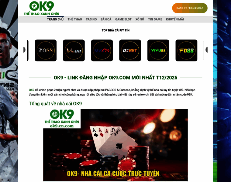 OK9 - Cá cược Thể thao, Casino, Nổ hũ uy tín. Tỷ lệ kèo tốt nhất, nạp rút tiền trong 1 phút. Đăng ký ngay nhận code 99K. Chơi là thắng, an toàn tuyệt đối!