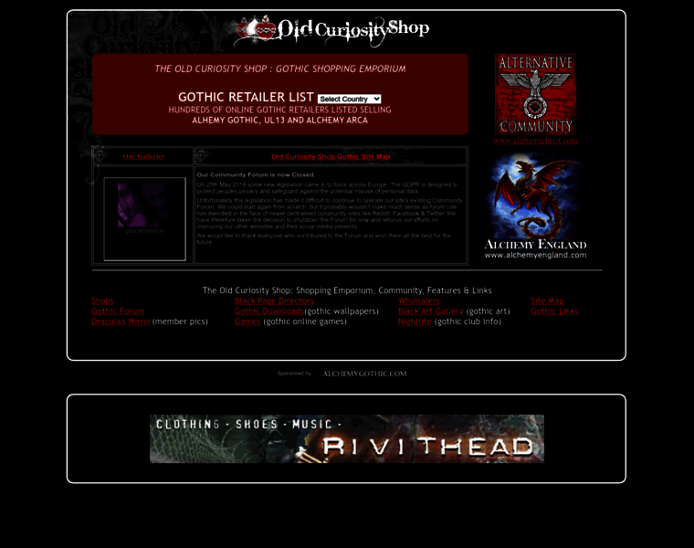 Old Curiosity Shop - Alternative Gothic Shop. For Gothic shopping, chat, forums, gothic poetry, gothic downloads and more.
