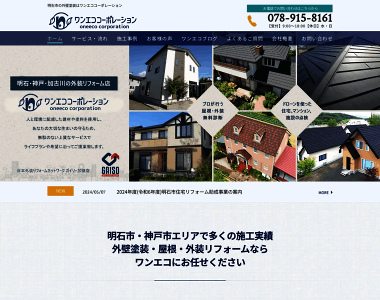 明石市を中心に神戸市・加古川市まで対応。光触媒コーティング、ドローン屋根点検、空き家管理など住まいの外回りを幅広くサポート。外壁塗装・屋根工事もご相談いただけます。
