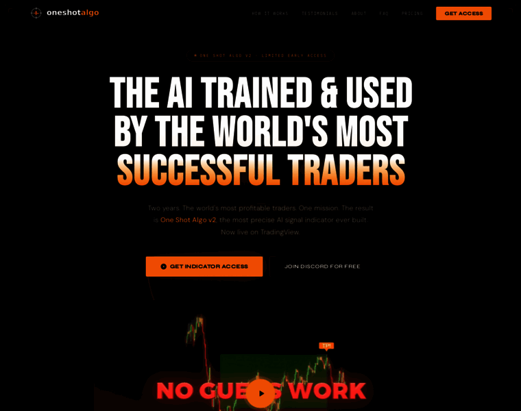 One Shot Algo v2 is an AI-powered trading indicator for TradingView. Trained by elite traders, zero repaint, works on all markets and time frames. Limited early access.