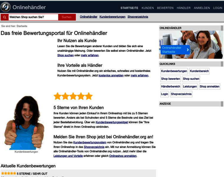 Onlinehändler.org ist die Website für Onlinehändler. Onlinehändler können das Kundenbewertungssystem von Onlinehändler.org nutzen oder ihren Shop in das Shopverzeichnis eintragen...