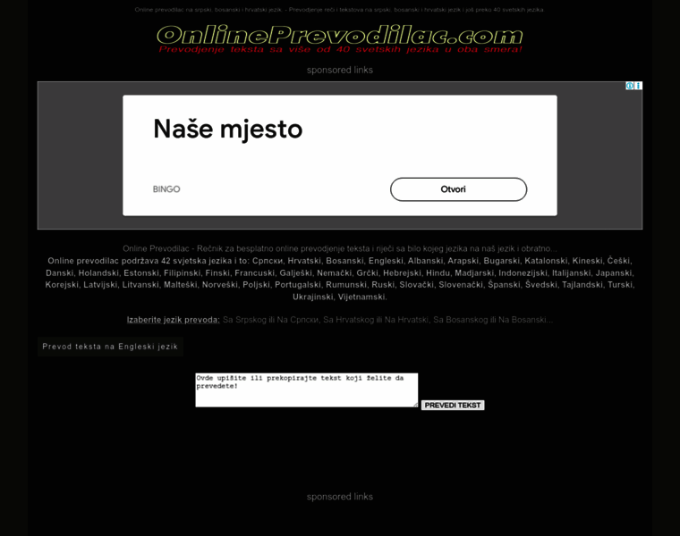 Online Prevodilac na srpski, bosanski i hrvatski jezik. Prevod teksta na srpski, bosanski i hrvatski jezik...