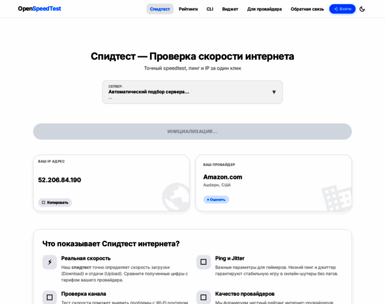 Спидтест (Speedtest) — точный сервис проверки скорости интернета. Измерьте реальную скорость скачивания, загрузки и пинг за 30 секунд. Независимый рейтинг провайдеров и проверка IP.