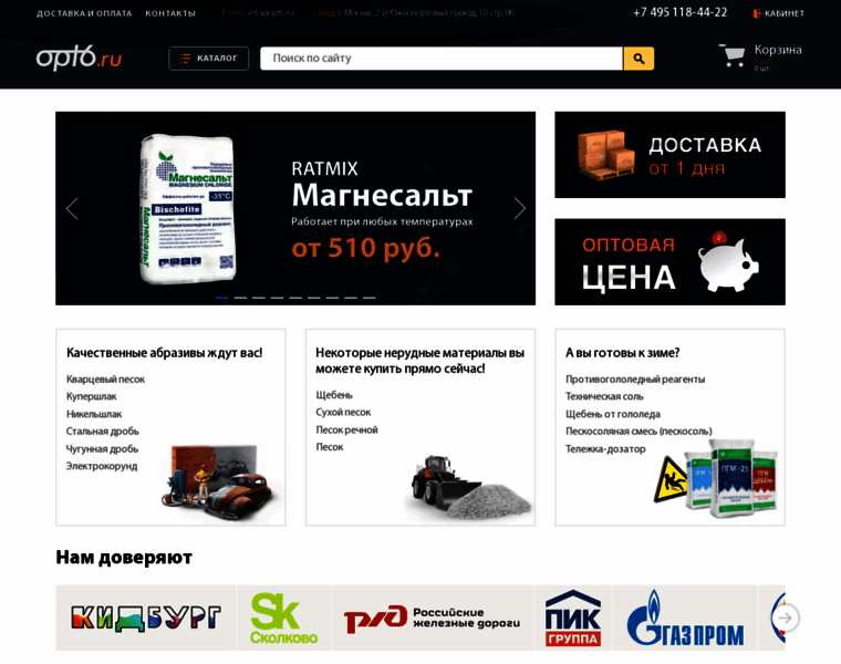 Компания "ОПТ6". Антигололедные и строительные материалы, купить в Москве.