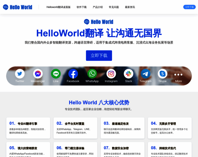 helloworld官网,HelloWorld翻译软件是您不可或缺的WhatsApp、Telegram、LINE、Facebook、Messenger聊天实时翻译助手。通过HelloWorld下载为出海企业提供高质量的即时聊天翻译服务,专业聊天翻译技术,极速稳定收发,全球畅游,使用邮箱免费注册登录体验,专业翻译技术团队开发,超数百家企业信赖.