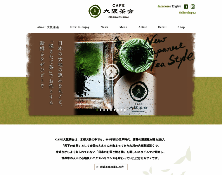 大阪|挽きたて緑茶(抹茶)と和菓子が楽しめるカフェ|CAFE大阪茶会【公式】