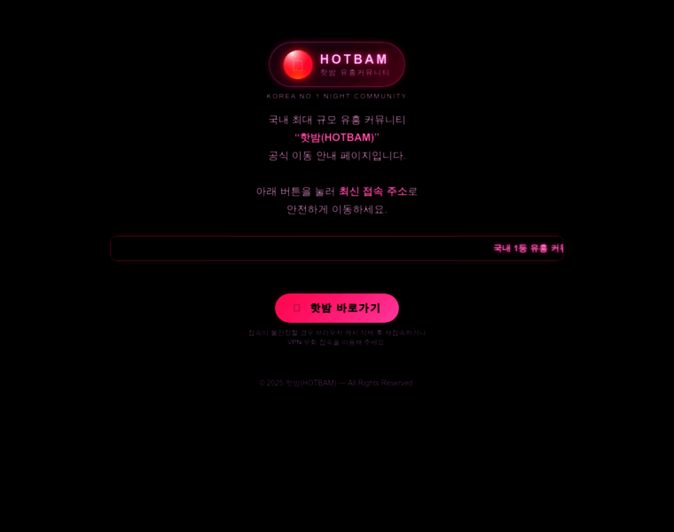 국내 최대 규모 유흥 커뮤니티 핫밤(HOTBAM) 공식 이동 안내 페이지입니다. 최신 접속 주소를 통해 안전하게 유흥사이트·오피사이트 정보를 확인하세요.