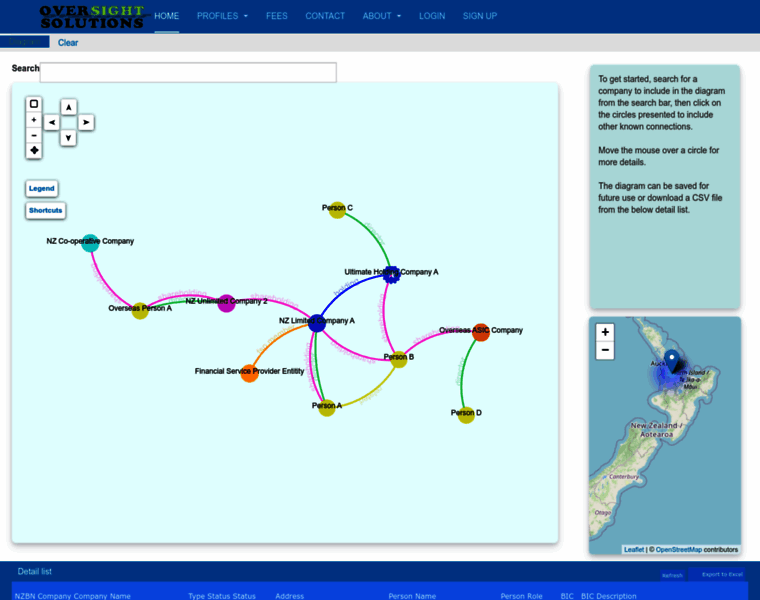An interactive data visualization of connections and relationships between companies, directors and shareholders as sourced from the official NZ companies office register. Also includes other publicly available information for greater Oversight into the influencers and entities involved.