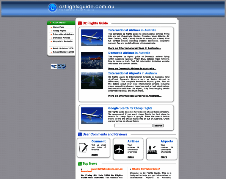 Ozflightsguide.com.au Homepage Change Through The Years
