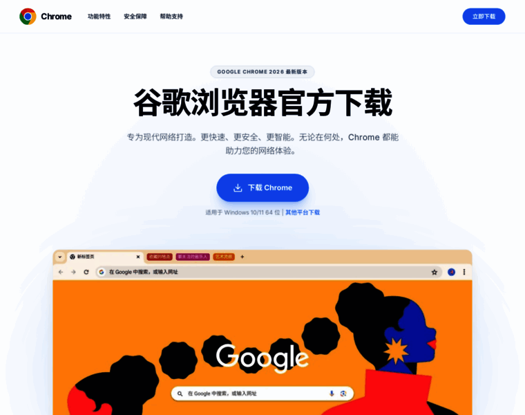 最新版谷歌浏览器官方下载_Google Chrome浏览器免费下载_适用于Windows11/10 64位系统,安全稳定,高速流畅,官方正版无捆绑。