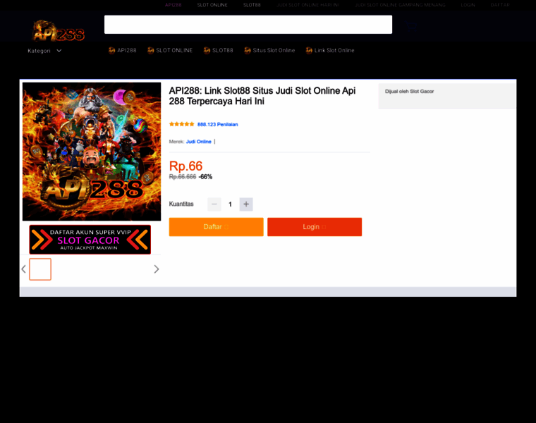 Api288 merupakan situs judi slot online terpercaya sekaligus agen slot88 terbaik penyedia link game slot terbaru hari ini api 288 dengan bonus rtp slot live tertinggi yang gampang jackpot.