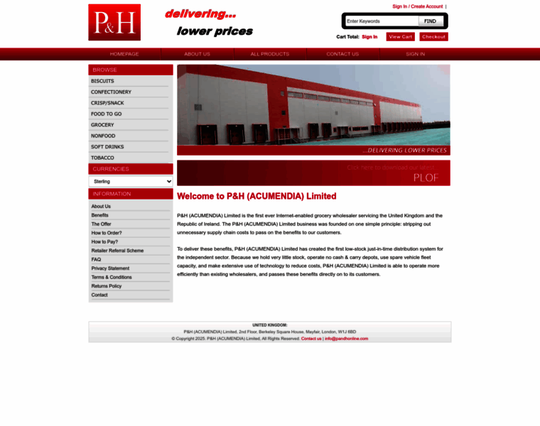 P&H (ACUMENDIA) Limited is the first ever Internet-enabled grocery wholesaler servicing Ireland. The P&H (ACUMENDIA) Limited business was founded on one simple principle: stripping out unnecessary supply chain costs to pass on the benefits to our customers